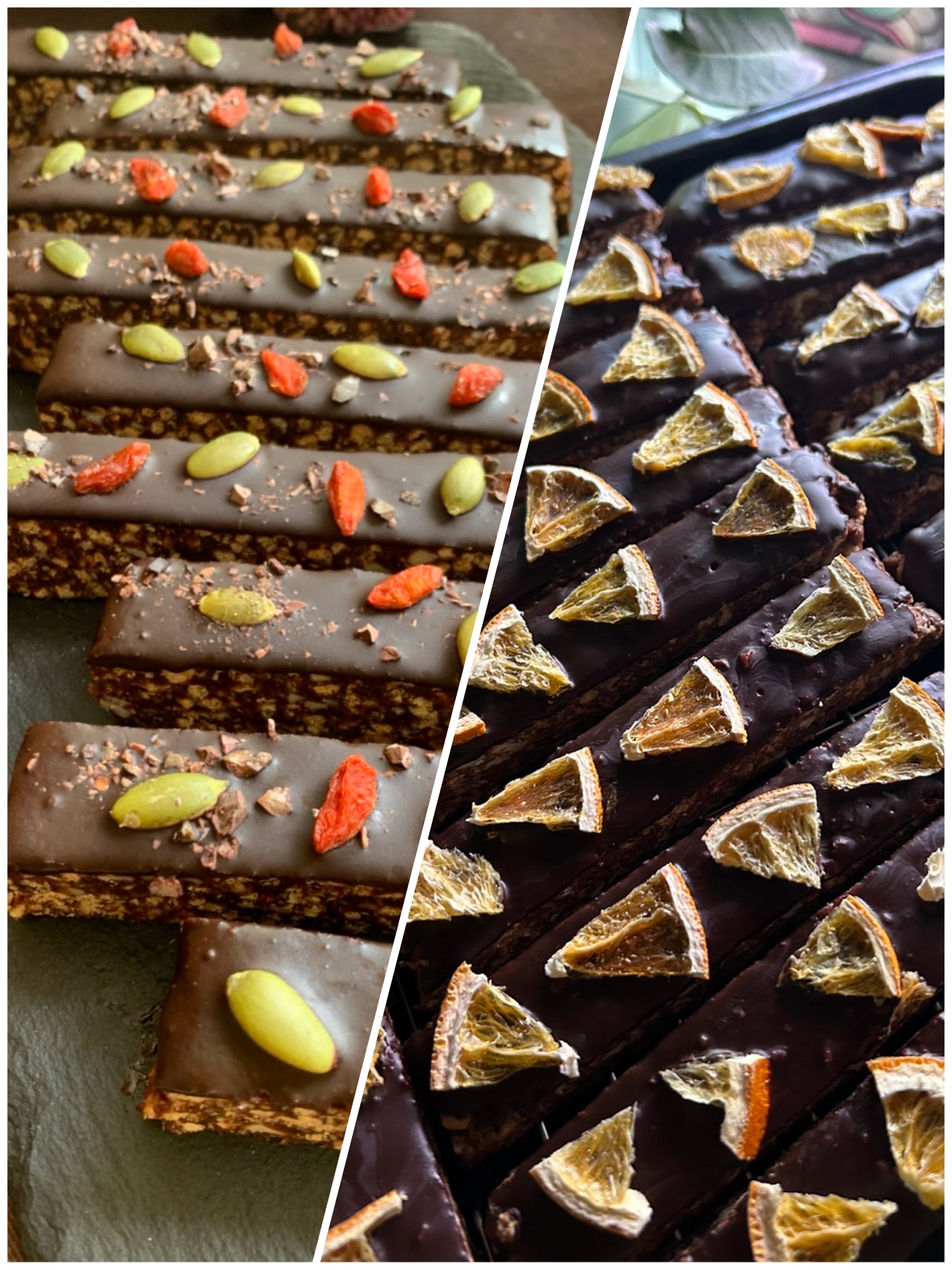 フルーツやナッツをカカオでコーティングした生のプロテインバー。