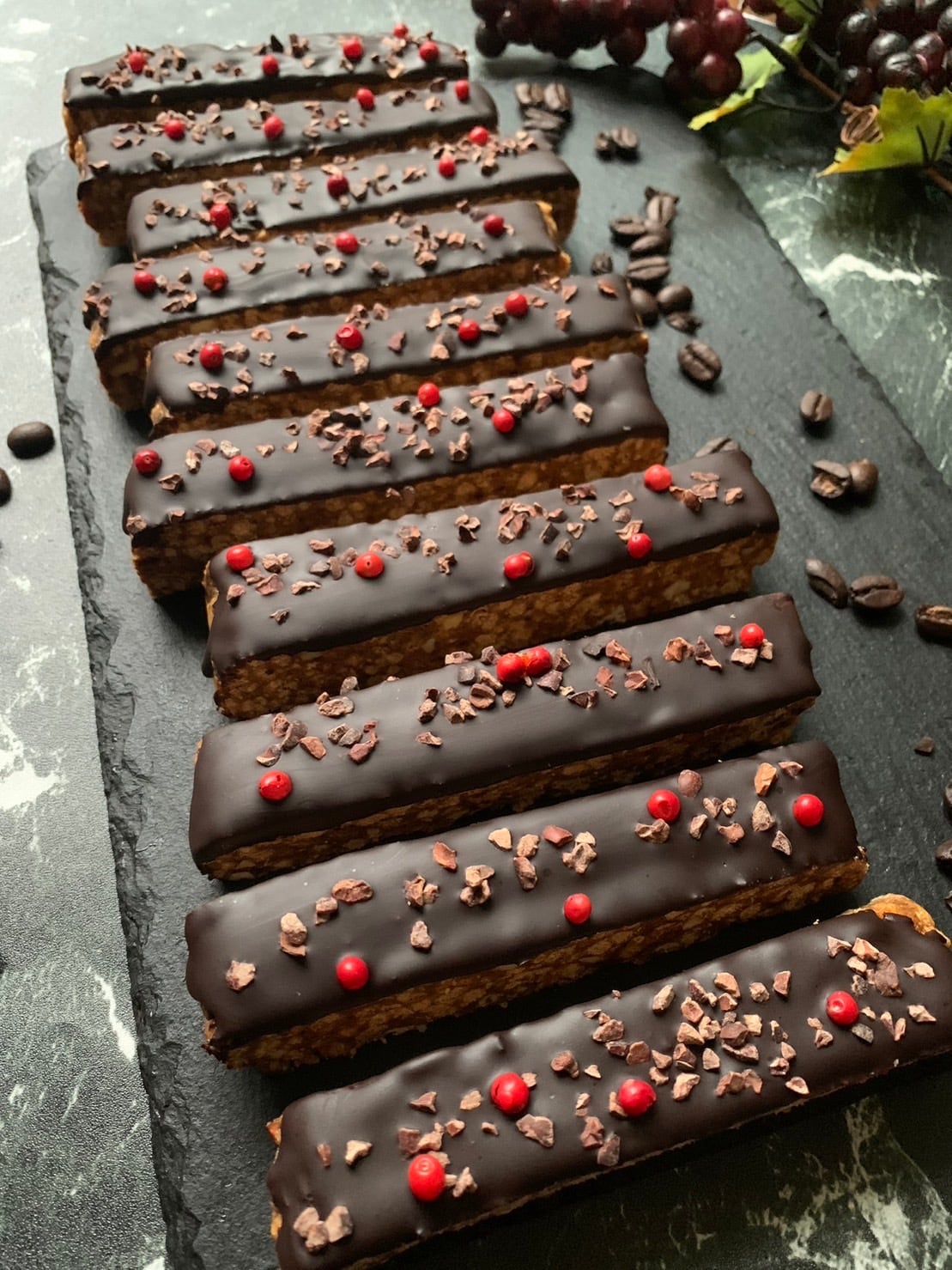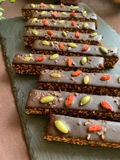 フルーツやナッツをカカオでコーティングした生のプロテインバー。