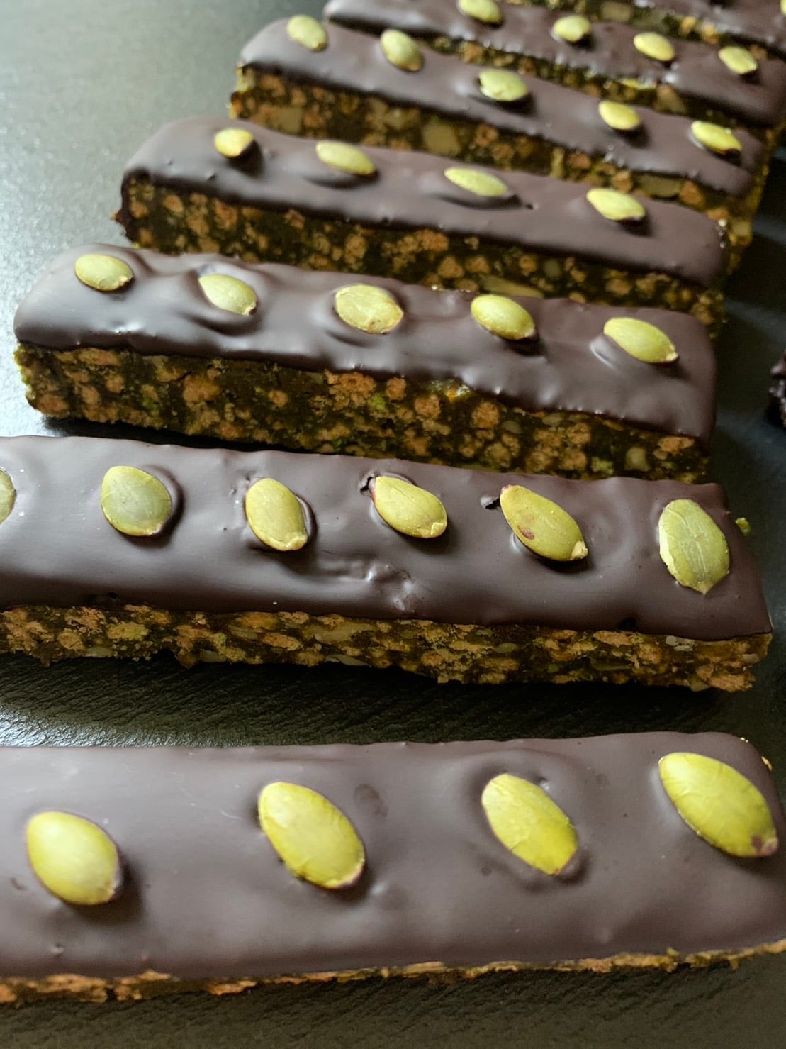 大豆ミート、大豆粉、デーツ、胡桃、パンプキンシード、抹茶、ココナツオイル、カカオパウダー