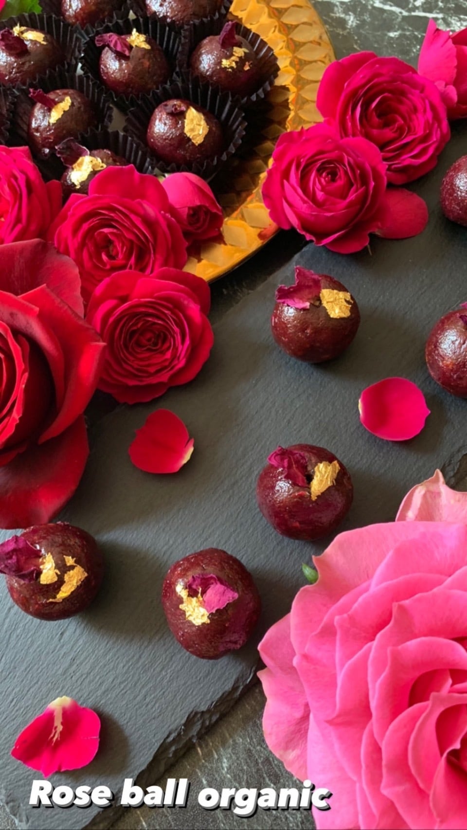 デーツ、ピスタチオ、クランベリー、ブルーベリーパウダー、ローズオイル